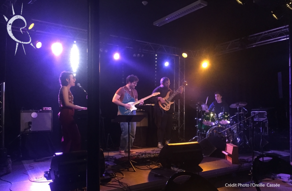Azaïs, une jeune formation en quartet qui est venue donner vie à son projet musical à l’Oreille Cassée la semaine dernière. Un groupe de chansons pop composé de quatre musiciens (piano et voix-looper, guitare, basse et enfin batterie) du conservatoire d’Évry dont l’objectif est de devenir professeurs de musique. Sous l’initiative de la chanteuse, Candice Balza, le groupe s’est formé afin de passer un examen dans le cadre de leur cursus.