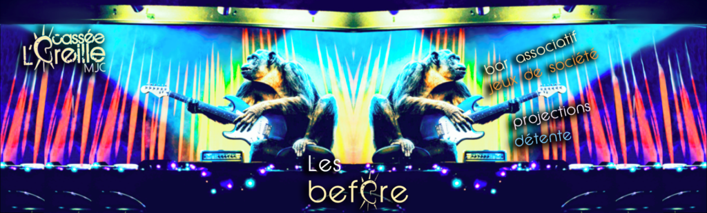 Un vendredi soir par mois, venez nous retrouver de 19 h à 23 h 30 dans nos locaux. Nous aurons le plaisir de vous accueillir avec nos soirées BEFORE à thème! Sympathie, Détente et Découverte seront au rendez-vous ! Des jeux de société, des escape games, des projections et bien d’autres animations seront organisées pour que vous puissiez profiter en vous amusant ! Sans oublier que vous pouvez aussi accéder à notre bar pour casser la croûte !