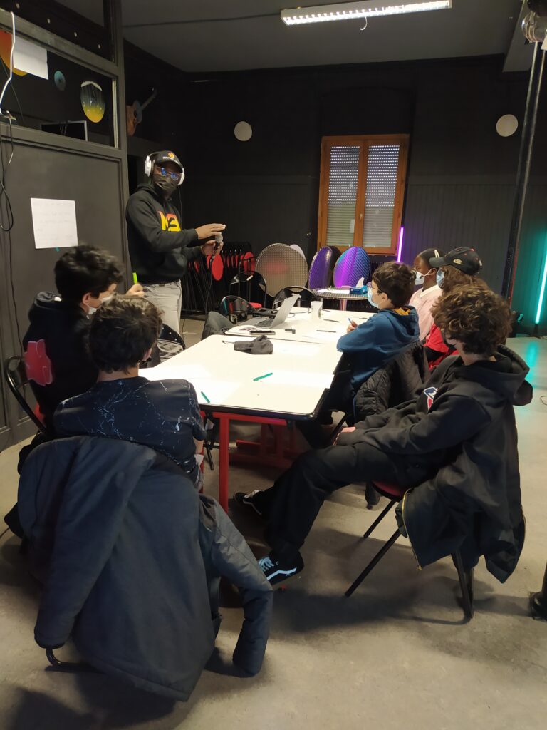 Au programme, choix d’une instru, d’un thème, et c’est parti ! Les jeunes ont écrit un texte en commun, puis ont enregistré un son, comme des pros !
